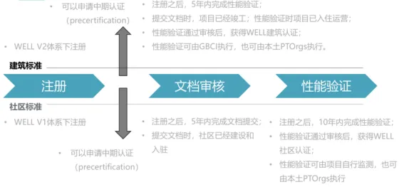 WELL certification includes registration, document review stage, and on-site performance verification stage. The specific workflow for WELL building certification and WELL community certification is mainly as follows: